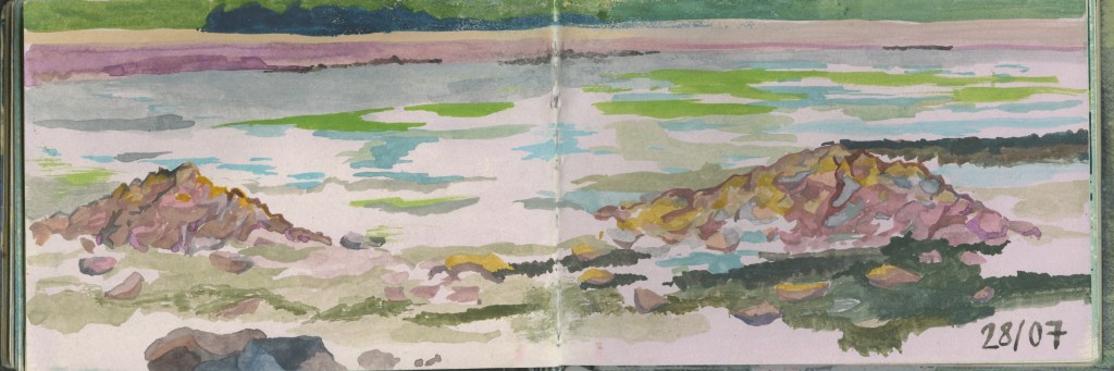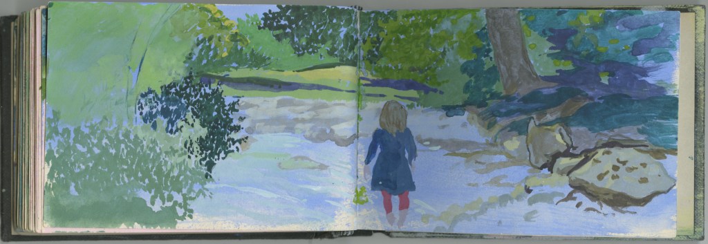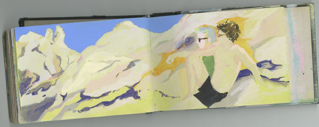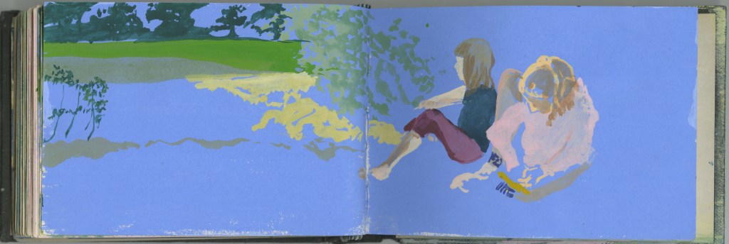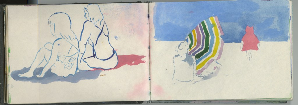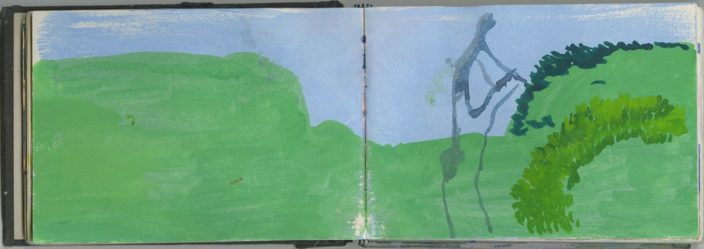 Le voyage en train constitue un motif d’exaspération visuelle, de frustration intense : tout s’offre et se réfracte aussitôt. Autant de promesses non-tenues que l’on voit défiler à 50 km/h dans le TER ou à 320 dans le TGV. Les carnets du quotidien sont une tentative d’épancher cette sensation : l’enfant bouge et il a déjà grandit, les hommes disparaissent, l’heure sonne, la roue tourne, on ne peut jamais finir et il est toujours trop tard !